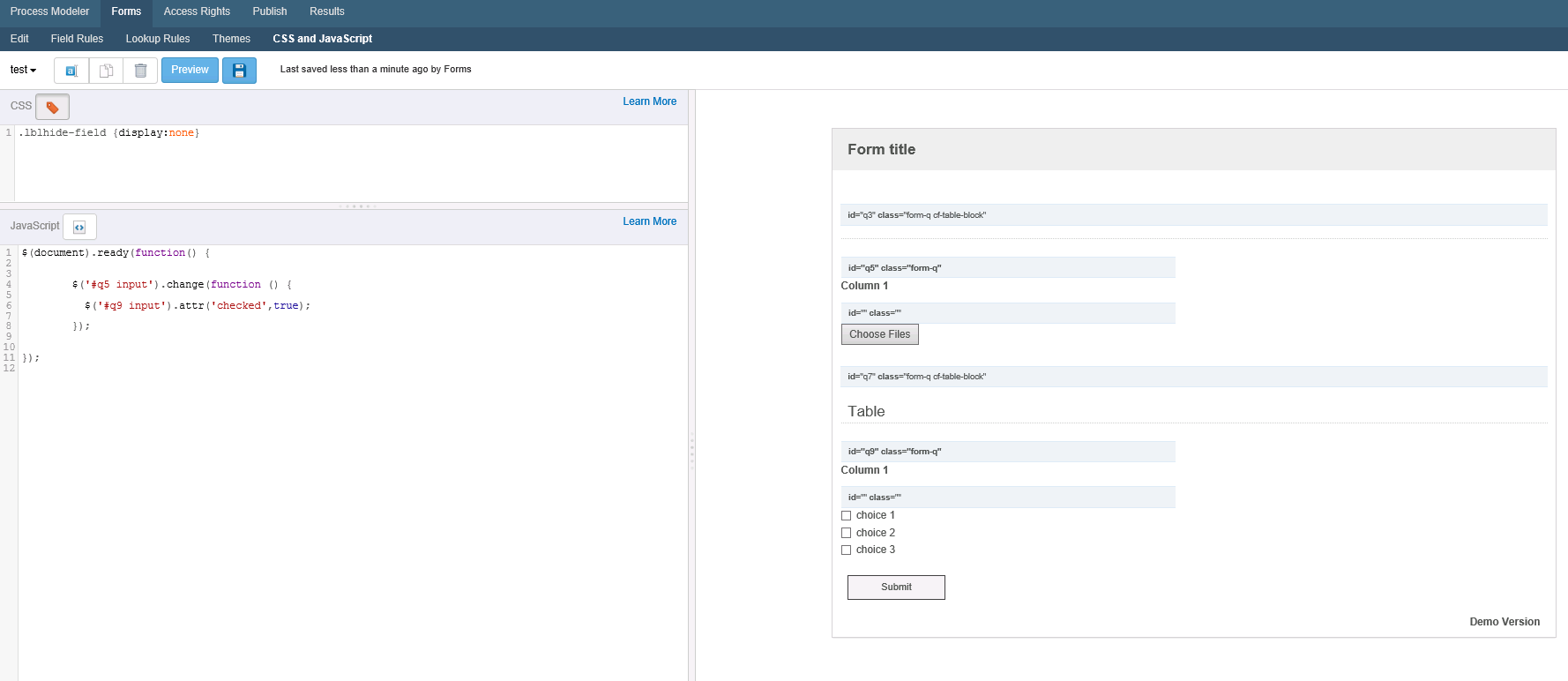 If you did include the document ready function, you can feel free to include a screenshot of your CSS and Javascript page, so long as it doesn't contain any sensitive info. If you don't feel comfortable sharing your screen on this public forum, you can always send an email to Presales@Laserfiche.com and reply to this post to let me know that you've included a file for my review.