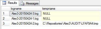 Now, what you will need to do is copy the .tmp file into the audit log rollover folder, where the rest of the rolled over log files are. Then you will need to rename the file back to its actual log name. In my case, I would rename LFAF9A4.tmp to Alex3-20150424-2.log after I had copied the file over.