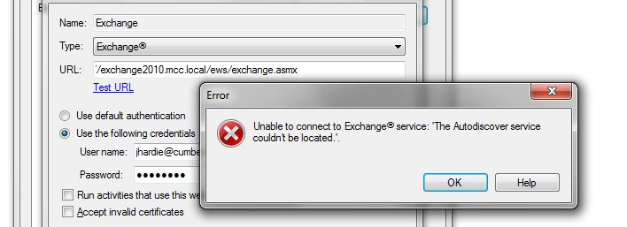 In a workflow I'm creating, I have an activity "Create Exchange Item" attempting to write an entry in a user's calendar. However, I can't get past the configuring of the web service. I keep getting the error (the title of this). I've configured LF Web access (see picture) as it should be, according to what I've googled. I'm sure this is an instance of Exchange being cranky. Can anyone help?