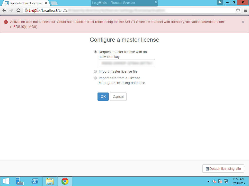 Receiving the following error when trying to activate the master license for a Rio 9.2.1 install