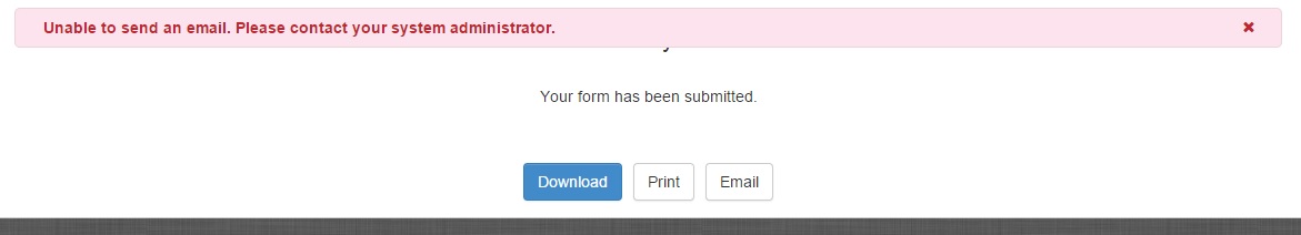The Thank you message was configured to enable the user to download, print or email the submission.