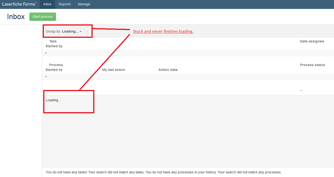 We have a client who is attempting to approve some form submissions but their Inbox does not load.