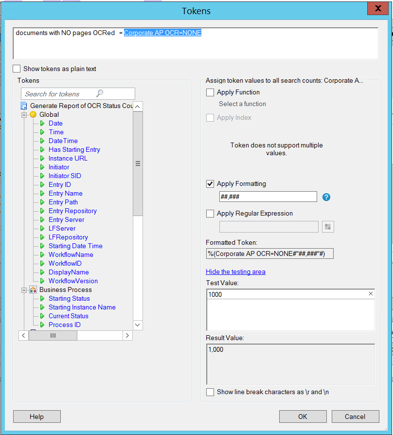 It's working just fine but when the results are zero (0) the email displays the token value as a null value or blank space.