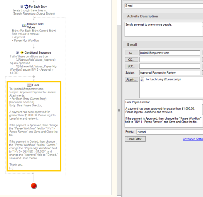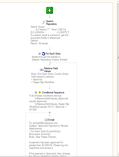 I have a workflow that starts when there is an entry change in the system, and looks through all entries to see if they meet certain criteria, and if so, it sends an email.