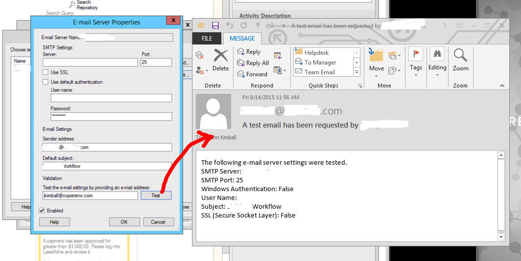 My settings in the Workflow Designer are correct, meaning it sends me a test email. But the workflow is no longer sending emails.