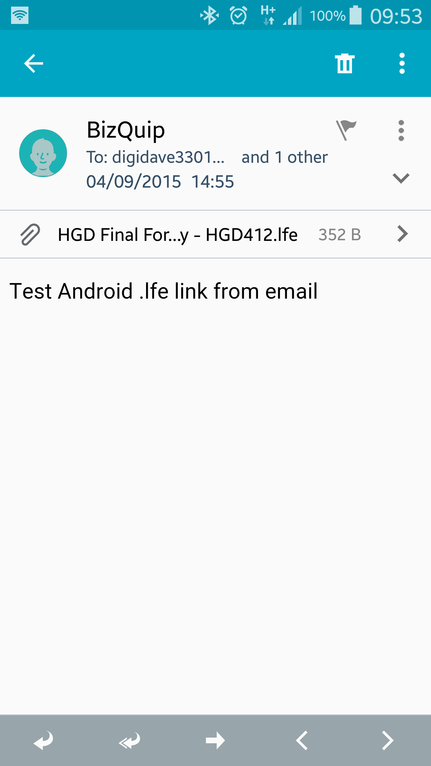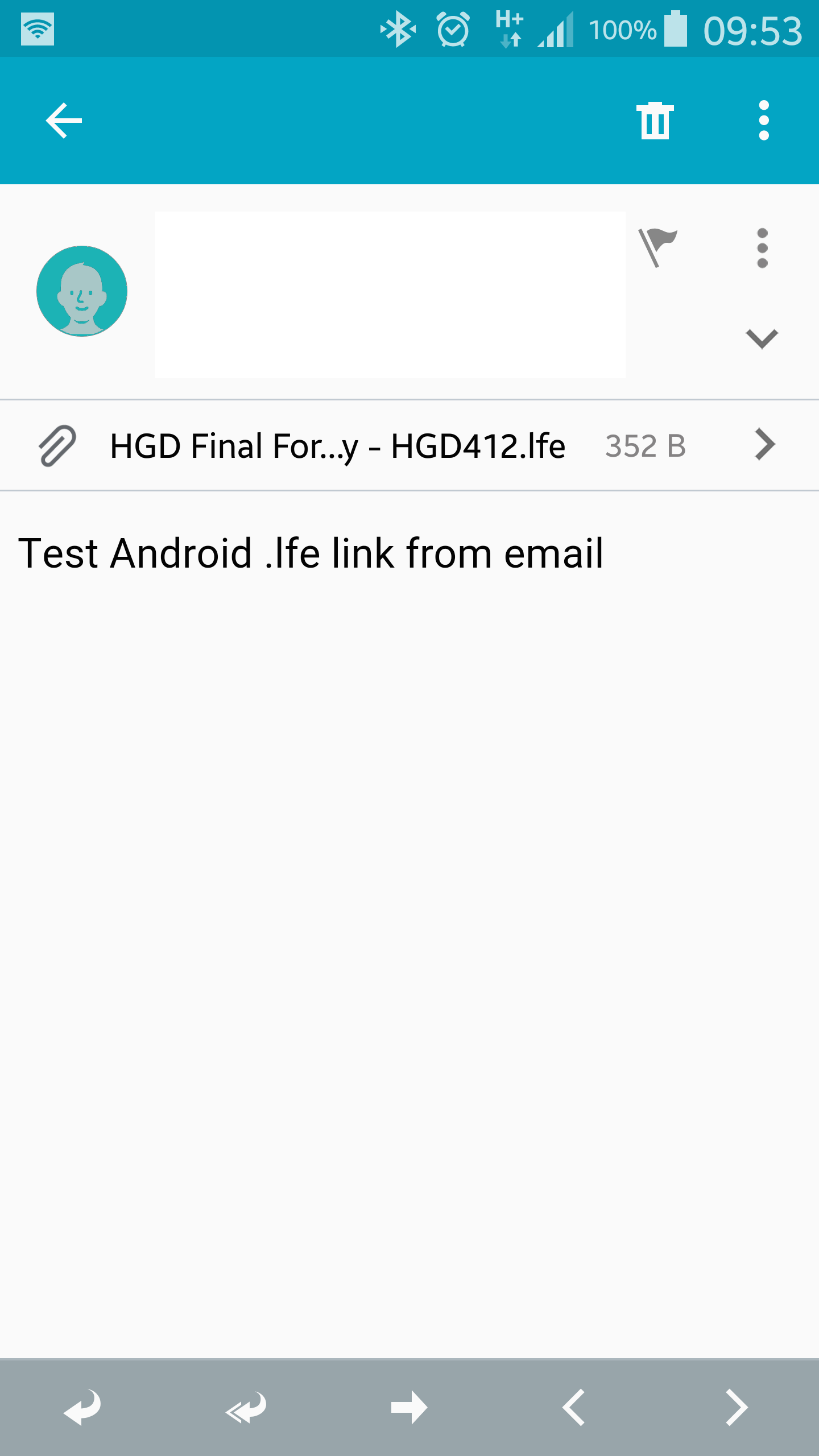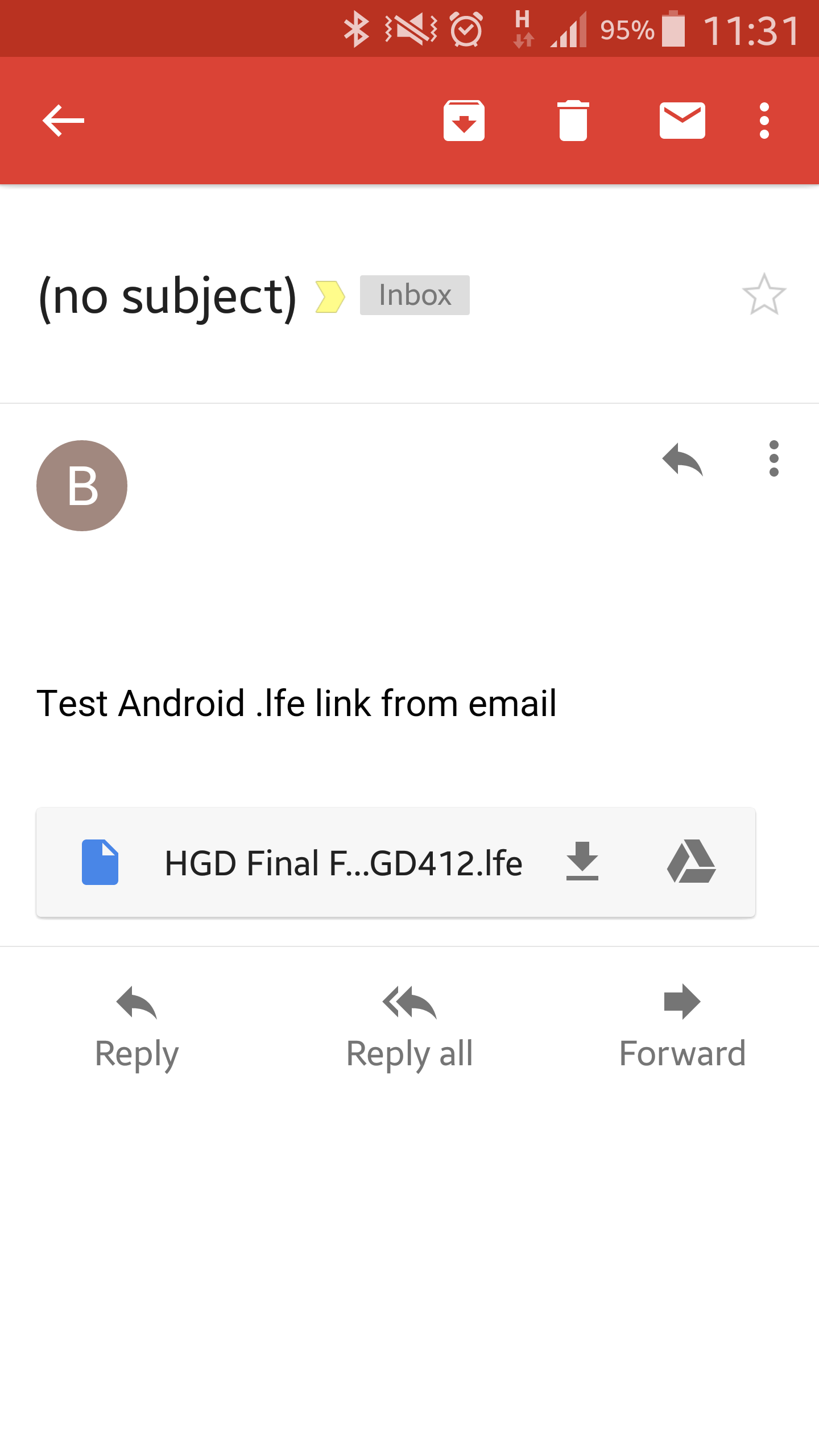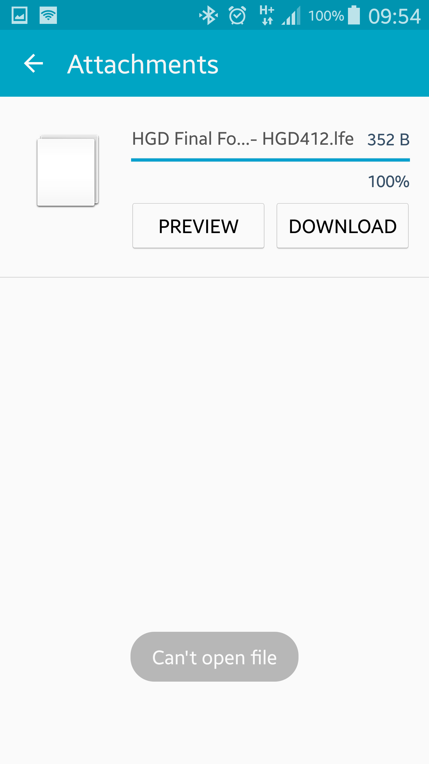 Has anyone else experienced this issue whereby .lfe links are visible and can be opened with the Gmail App on Android (Samsung 2015 device) running 5.0.1 and you cannot open them via the native email app nor the Outlook app? Is their a settings issue? The client runs MDM software and policies so is this the cause?