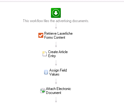 I am new to Laserfiche Workflow, I am trying to create a entry in the repository from the data off the submitted form. I am able to create the entry and get the data from the form however I am having issues inserting the attachment. When the workflow runs I get the entry in the repository with the template/meta data but there are no pages in it.