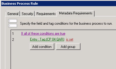 I have a business process, for which I have a metadata requirement set to check for one of the Tags.