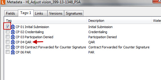In the screenshot below, the tag to look for is - 'CP 04 QAR'. But for the entry, I have 'CP 01 Initial Submission' set. If I run the business process, it runs successfully and does NOT through an error.