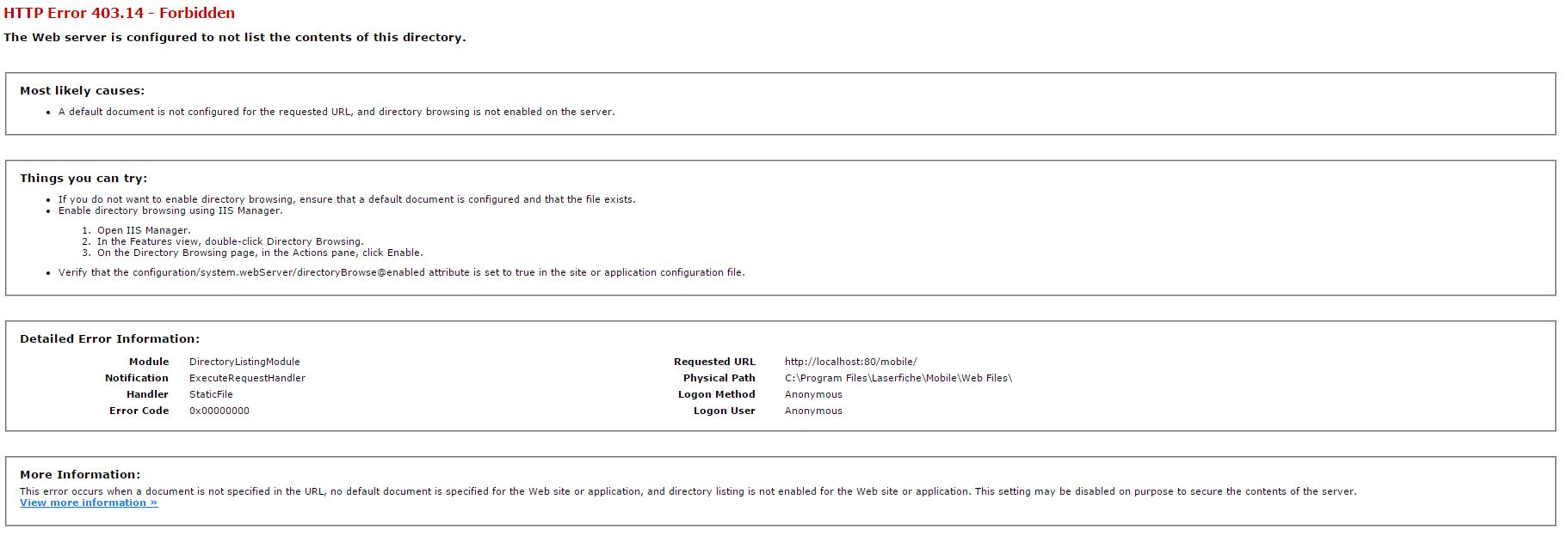 However, any time I try to use the Windows mobile app on my Windows 8.1 laptop to connect to the repository / mobile site that resides on my laptop I always get the following Network Failure error.