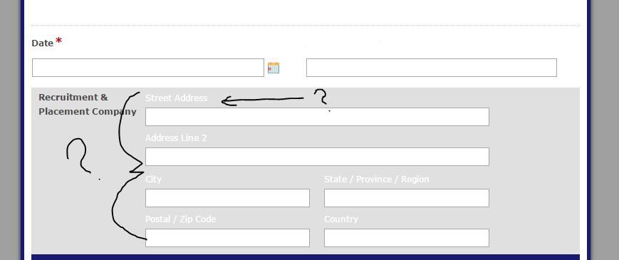 However, within my form (see attached photo below) the text detailing which line equates to detail of the address being given, the font is white. Having white font on a form with a white background is not the desired look. Once someone clicks on the 'Address' section to complete it is highlighted in grey and the white font appears; however this is not my desired look.