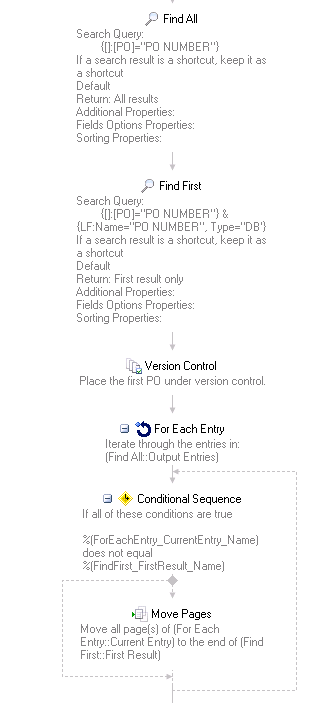 In my current situation, I need to take several documents and combine them together with versioning. For instance, I have 5 documents in the repository with the document names "12345", "12345 (2)", "12345 (3)", "12345 (4)", "12345 (5)". In my case, the 12345 indicates PO number so all of the PO Numbers metadata are set to 12345. I want to combine these documents into 1 document with document name "12345" being version 1, document name "12345 (2)", being version 2, etc.