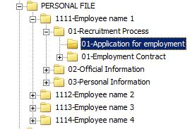 2) Inside each above mentioned Sub folders there are 3 Sub folders(Recruitment Process, Official information , Personal Information).