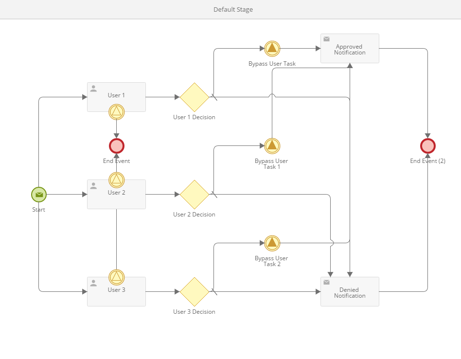 My process requires to have 6 users who need to approve. However, if any from 6 approves first, then I want the process to continue to next step. However within the sub process, even though I only use one parallel gateway, the flow is waiting for other 5 users to complete the tasks. How can I bypass others if one approves first?