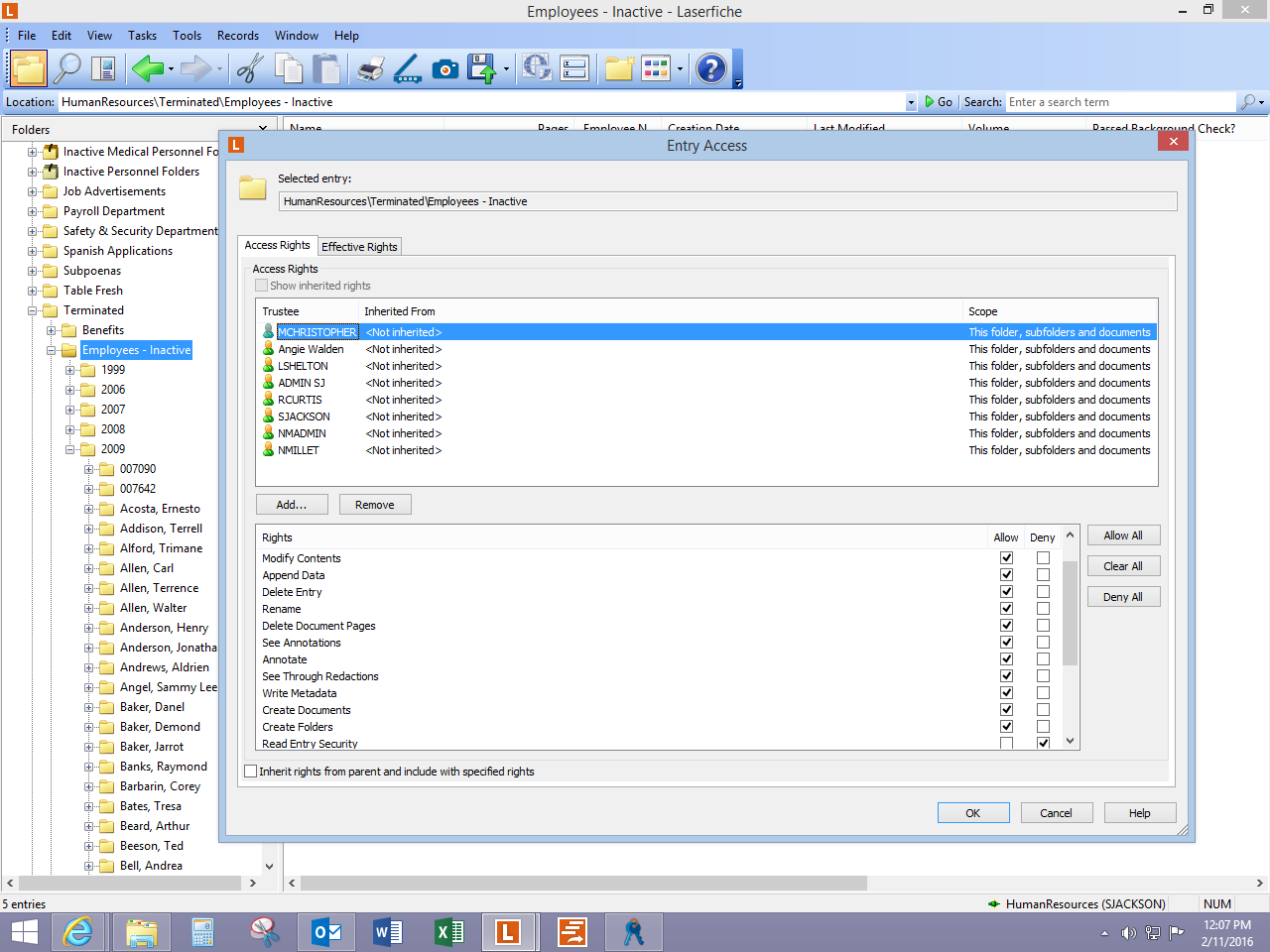 I am trying to give an employee access to a couple of subfolders. Please see attached pictures. I want them to see Personnel Files Inactive and Medical which contain the shortcuts. The folder Terminated I have them set with access rights to browse and read. For the two subfolders I want them to see, they have more rights. Please see example attached user: M. Christopher. They keep getting an error message. Suggestions please on what I haven't done right.