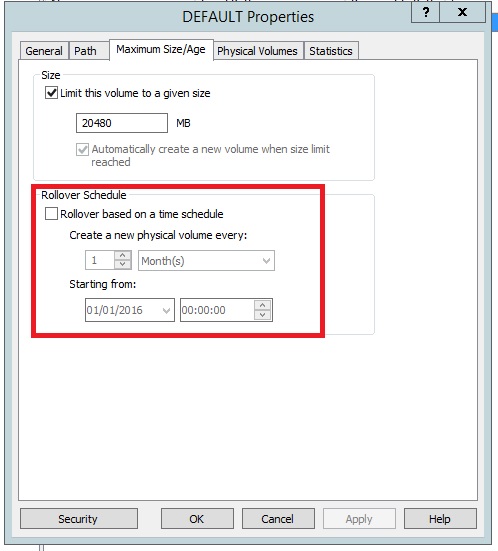 Please refer to attached screenshot. In case that the size of the first volume(i.e. VOLUME_0) has reached its 20480 MB and the rollover schedule was selected, all new files uploaded to Laserfiche Client will just get rolled over to a new sub-physical volume folders WITHIN the same logical VOLUME_0 volume and it will never move to VOLUME_1. For instance, new files will move in VOLUME_0_01 and after a time schedule set up, new files will move in VOLUME_0_02 etc. Thanks to confirm if my understanding is correct.