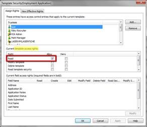 From within the Security window, choose the user or group of users you’re granting rights to. To enable them to set this template, give them the Read Template Access Right: