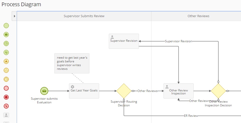 I get the workflow described above & I think I can get that part to work. The problem is it seems i can only call the workflow AFTER the supervisor completes the form and he needs last years goals when he's writing the review.