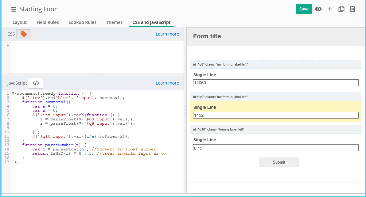 Subsequently I wanted to see what I need to setup for summing multiple fields, some sums need to be negative.
