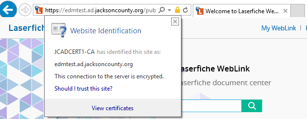 - I have a certificate installed on the laserfiche server Certificates (Local Computer)\Personal\Certificates.