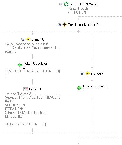I have a multi value field (TKN_EN) which has answers from a survey in each field. I want to score the test adding up the points based the answers provided. When I use the token calculator activity in