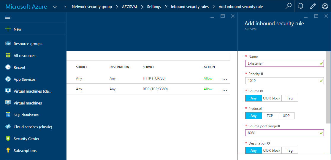 Yes i did send you the screenshot in which you can see the default RDP was made and i then explicitly made the additional lflistener for port 80 and now i made another for port 8081.