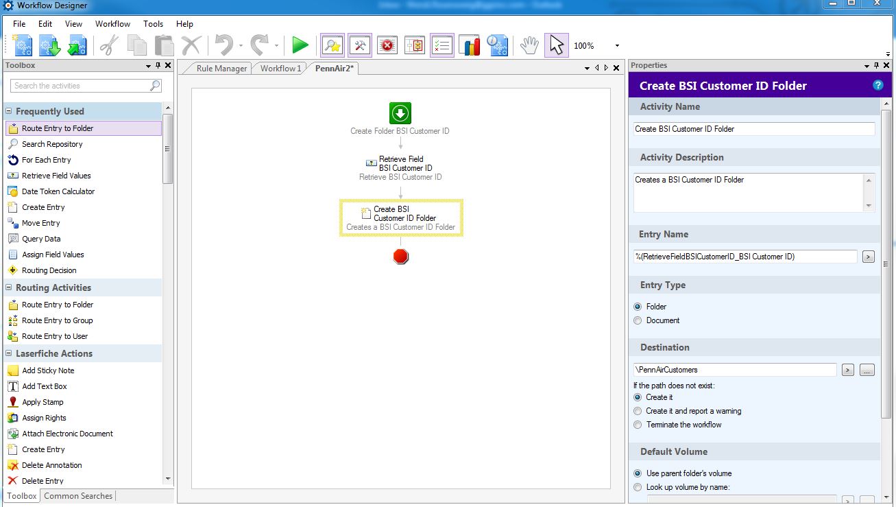 I made a template with Customer ID (required) which I did fill in. For now I just want the workflow to retrieve the customer ID and create a folder with that information