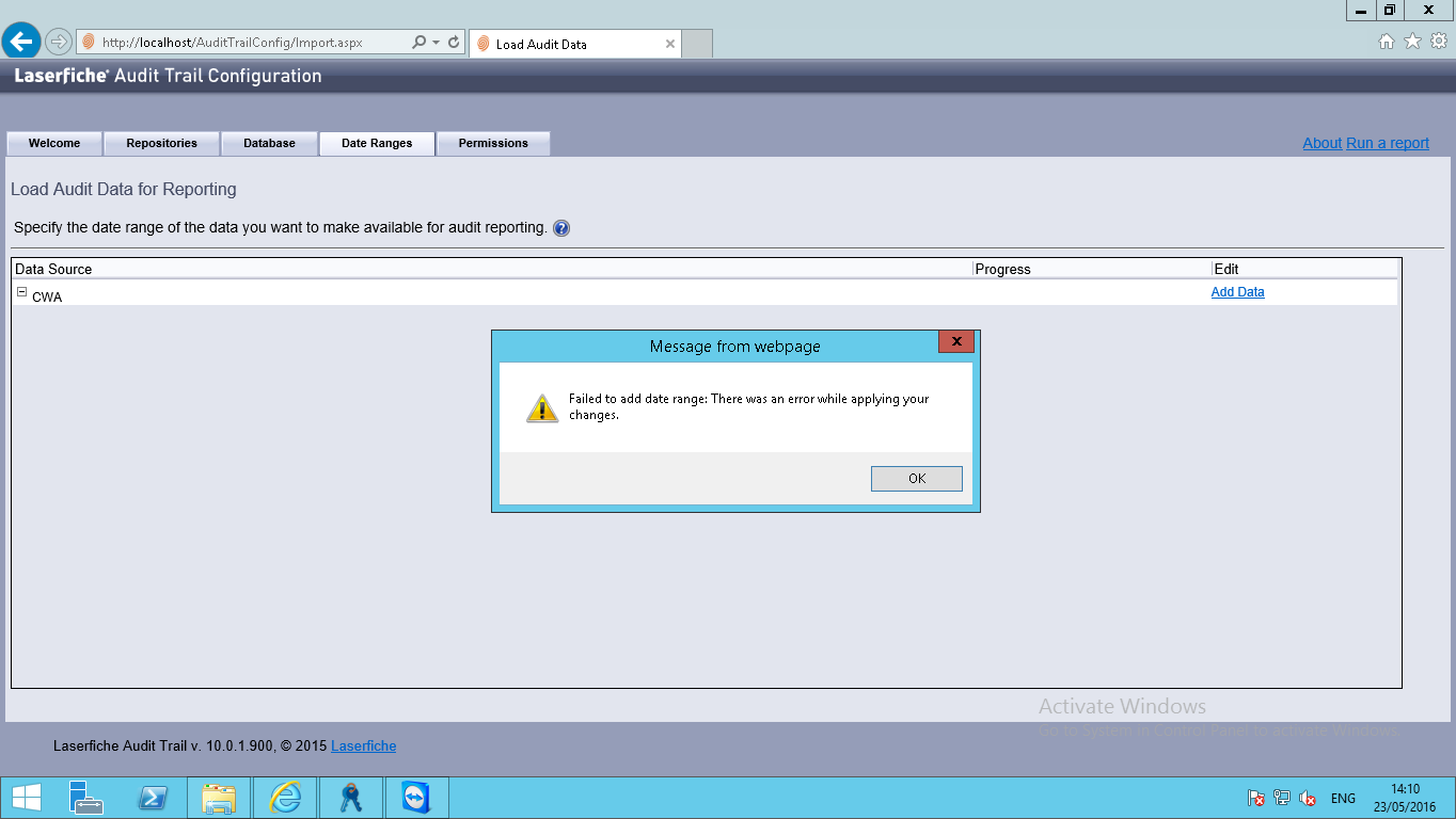When am trying to specify the age for the last 90 days in the Date ranges tab I am having this error shown on the picture below: