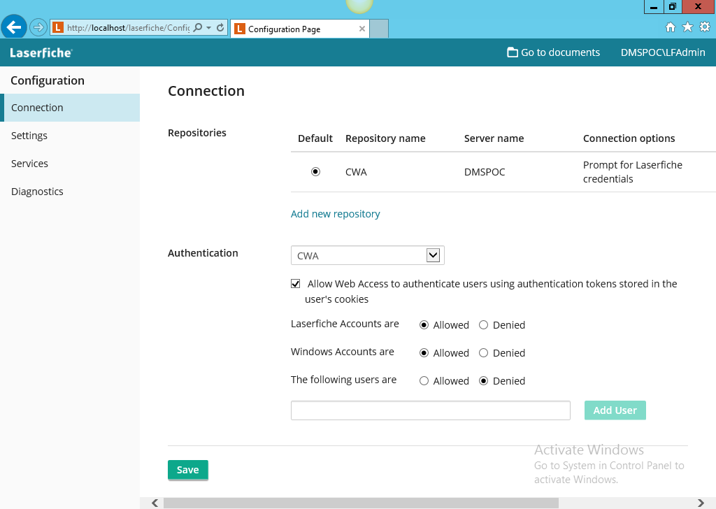 I installed laserfiche web access 10.2 and try all the connection option choice