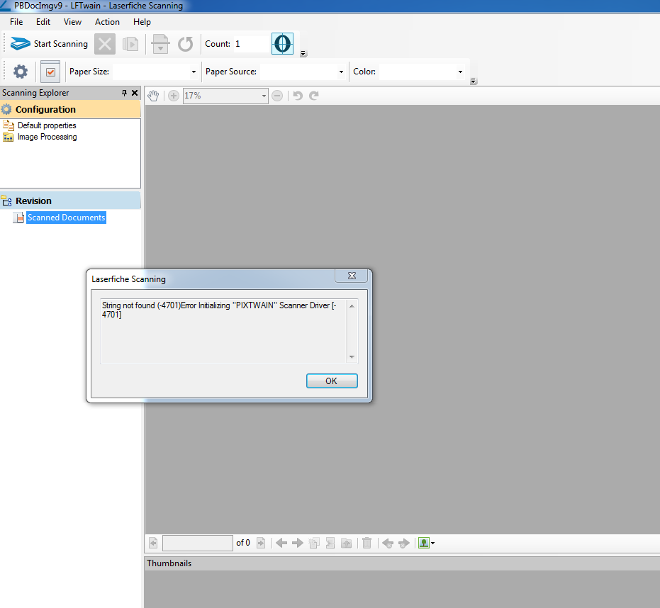 -Scanner does seem to work fine though outside of laserfiche