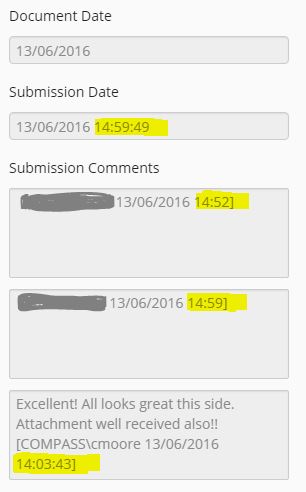 See my screenshot below. Where it would to an untrained eye appear that we have reviewed and approved a form submission before it was actually submitted. However we know this is not the case because of the time differences (1 hour difference).